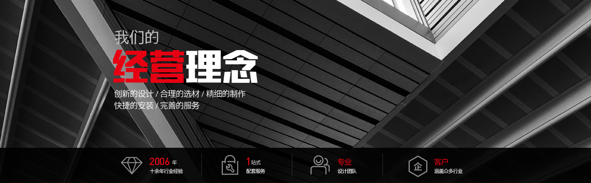 誠信是我們賴以生存的根本。創(chuàng)新的設計,合理的選材,精細的制作,快捷的安裝,完善的服務是我們也就不變的經(jīng)營理念。我們竭誠為您提供中******,個性化,創(chuàng)意性的作品,我們不斷進取,努力今天的同時也在發(fā)展未來,期待與您結成事業(yè)上的好伙伴,共圖發(fā)展!